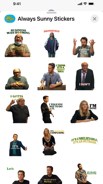 「いつも晴れたフィラデルフィア」の全15シーズンと161エピソードをHuluでストリーミングできるので、メッセージング体験を「いつも晴れたステッカー」で充実させましょう。
